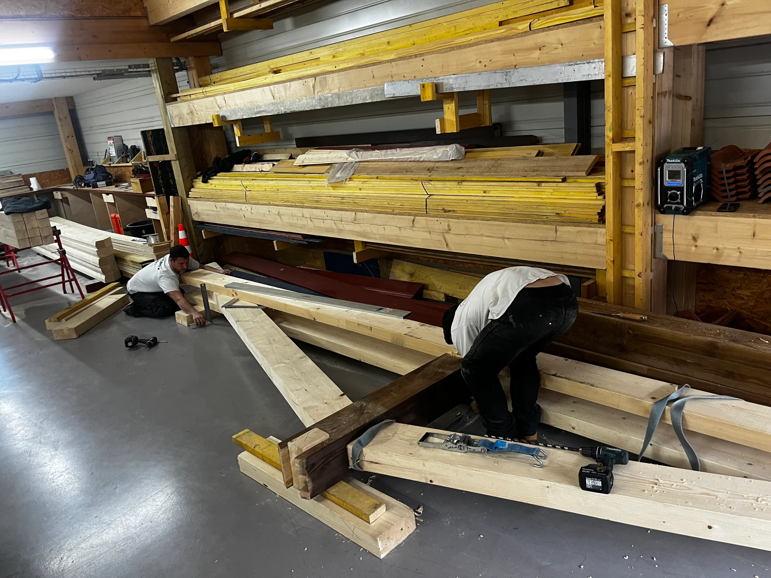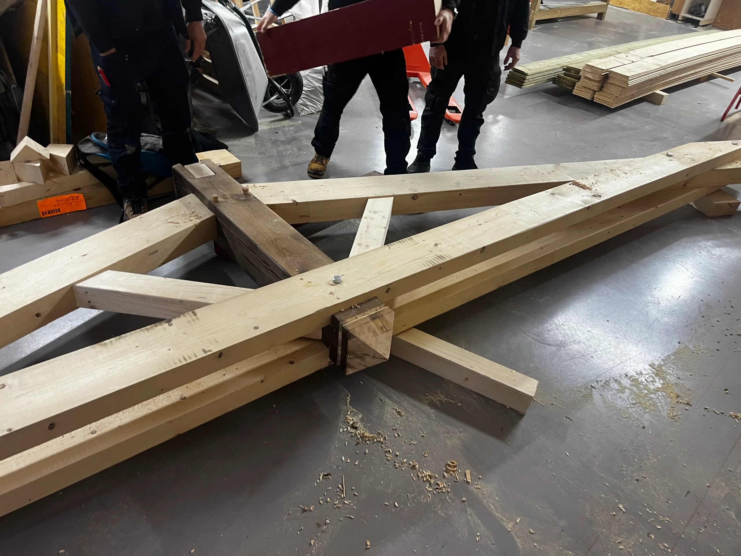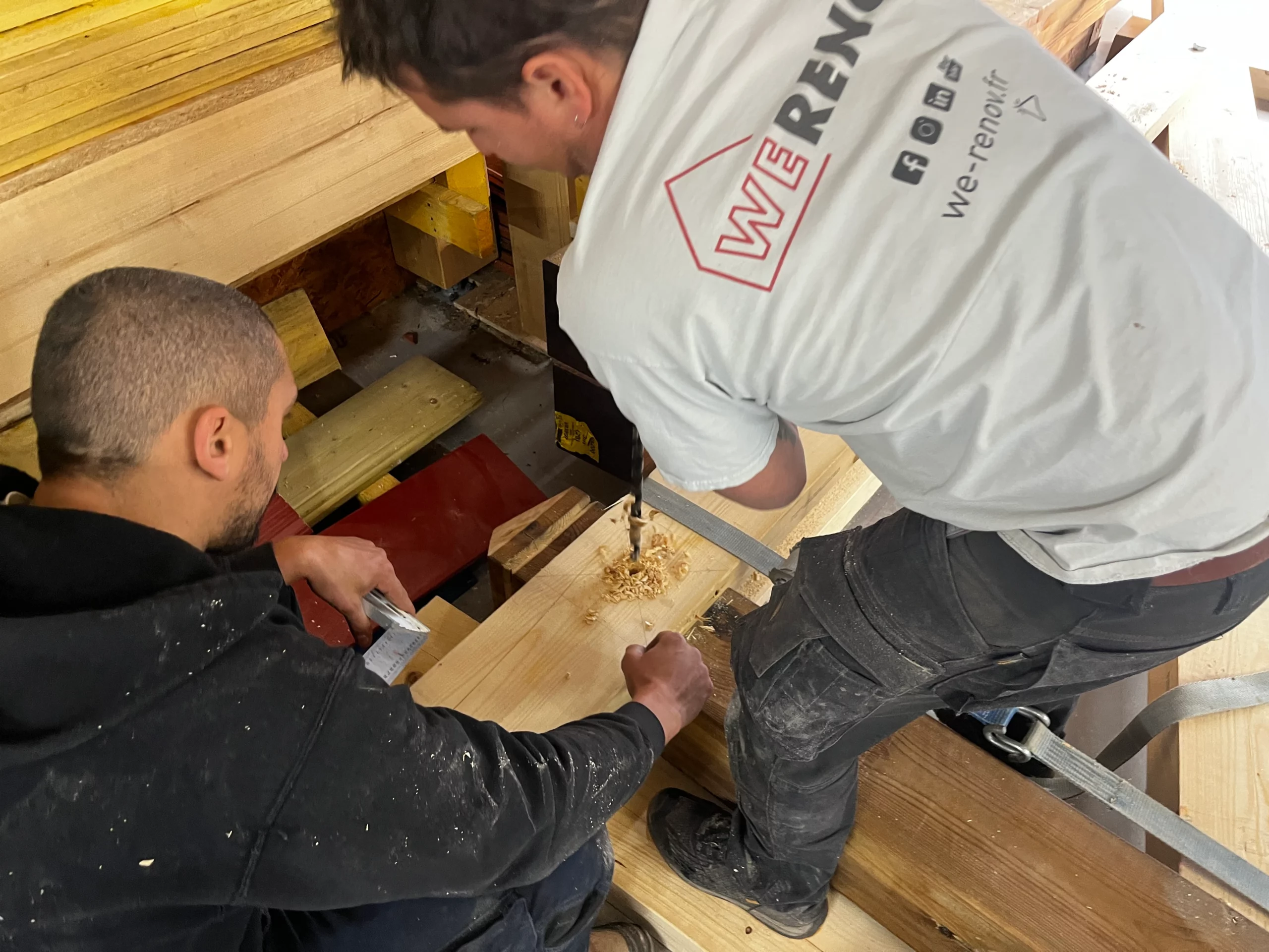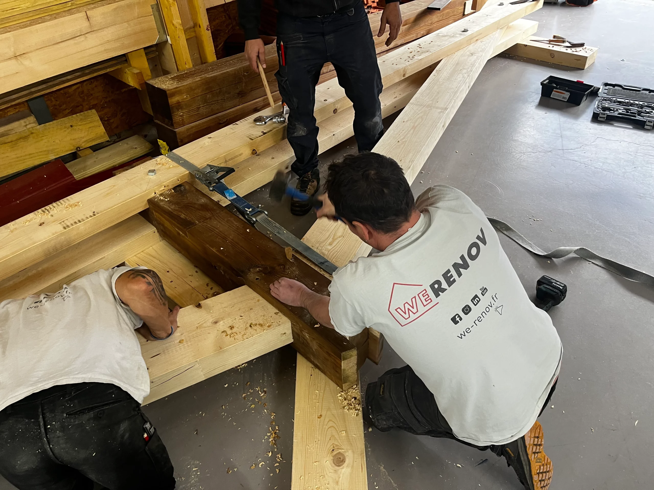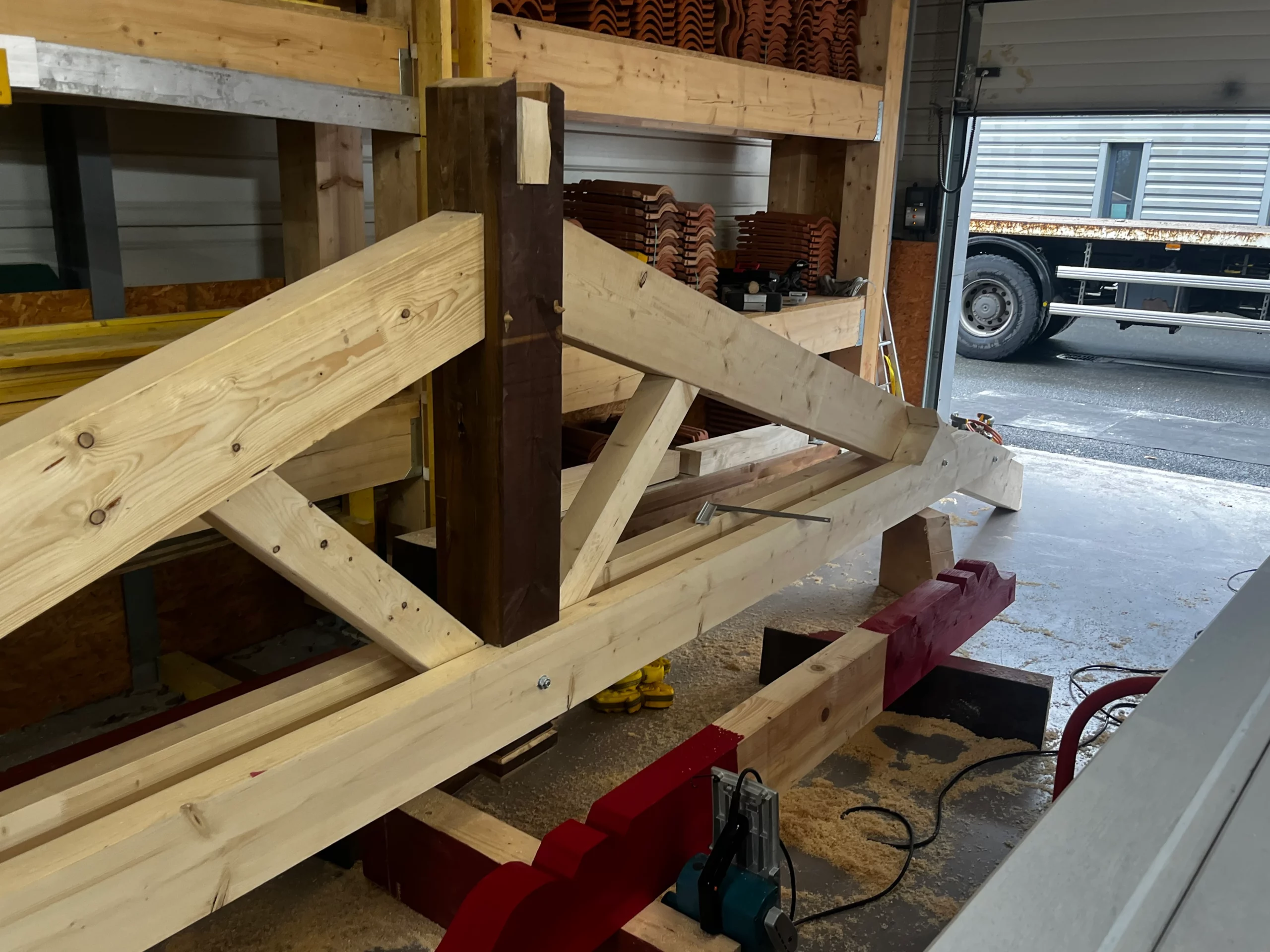 Ce type d’ouvrage demande une préparation rigoureuse : traçage, taille des assemblages et ajustements sont réalisés en atelier pour garantir un emboîtement précis lors du montage.