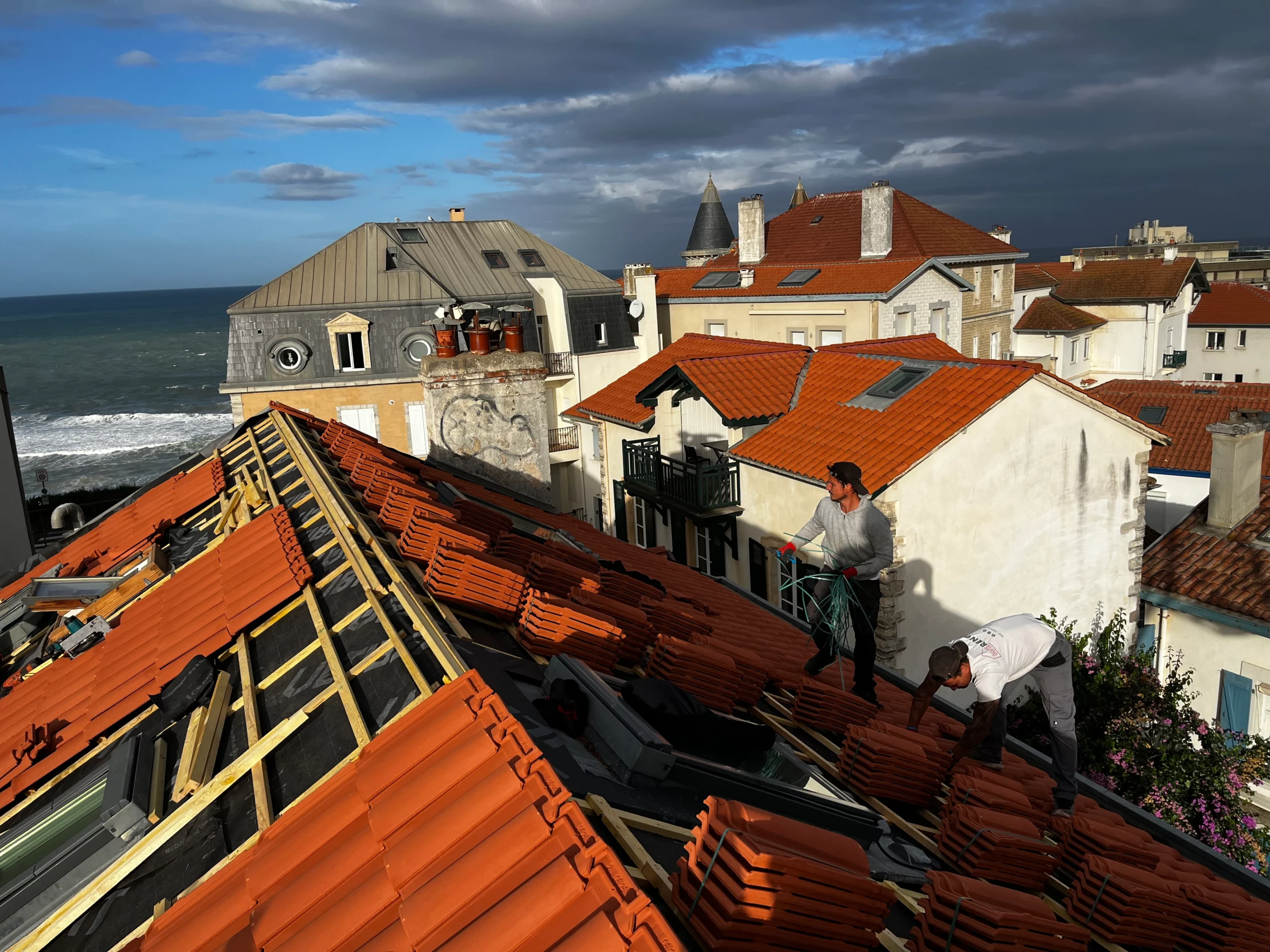 À Biarritz, l’air marin et les intempéries du Pays Basque ne font pas de cadeau aux toitures vieillissantes. Nous sommes récemment intervenus sur une villa
