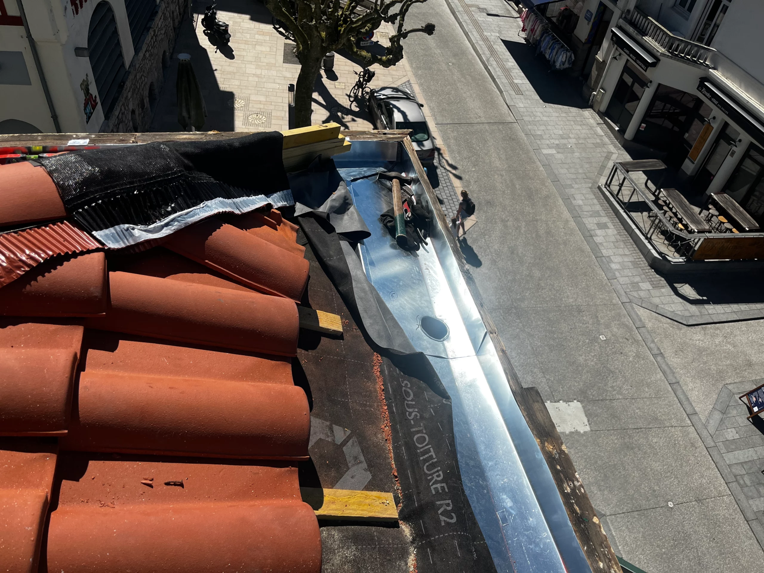 - Noues : usées et fuyardes, elles ont été remplacées par des éléments neufs en zinc façonné sur mesure.