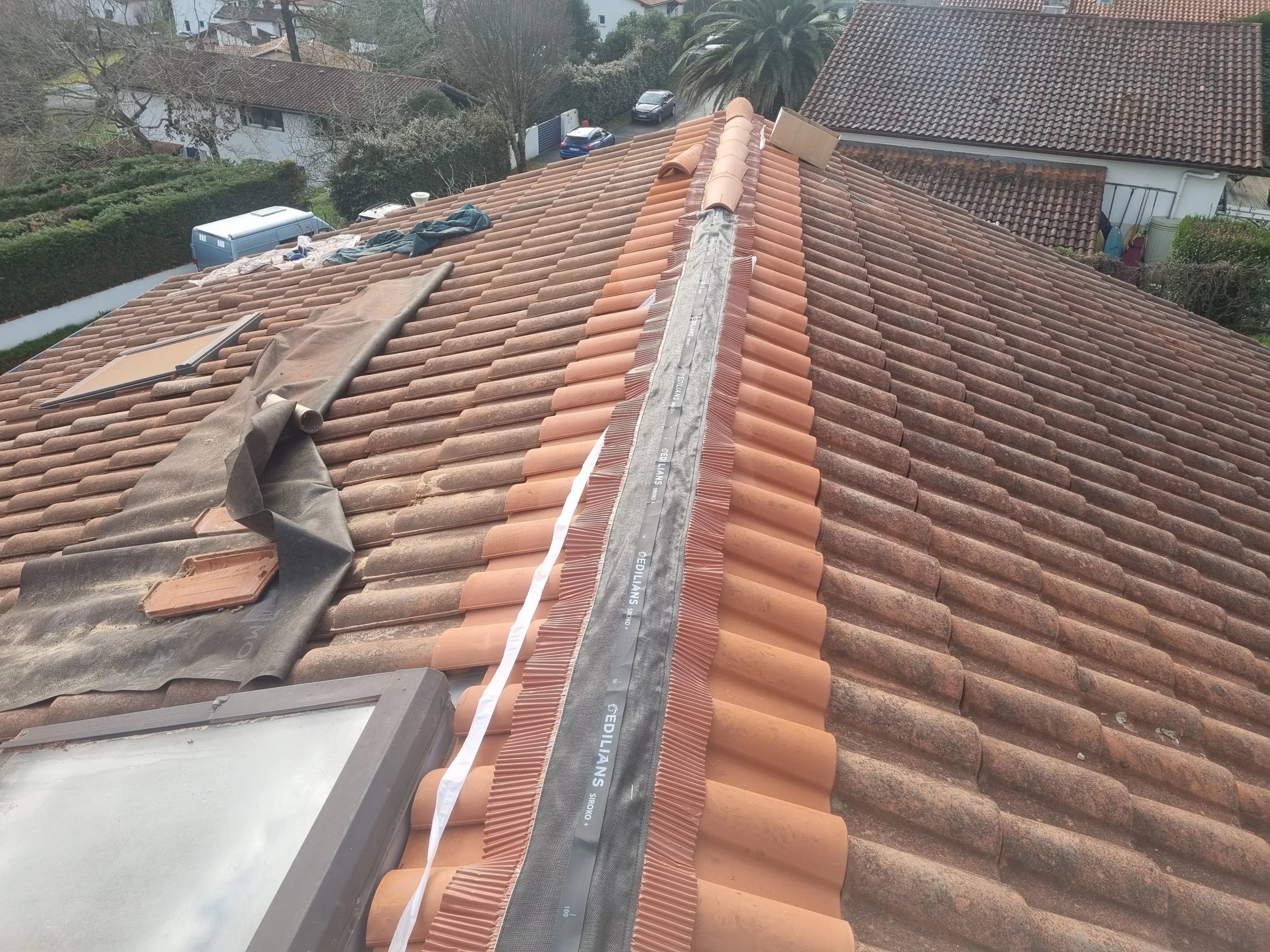 Dans le cadre de ce remplacement d’un faîtage à sec à Anglet, nous avons installé un closoir ventilé sur toute la longueur du faîtage.