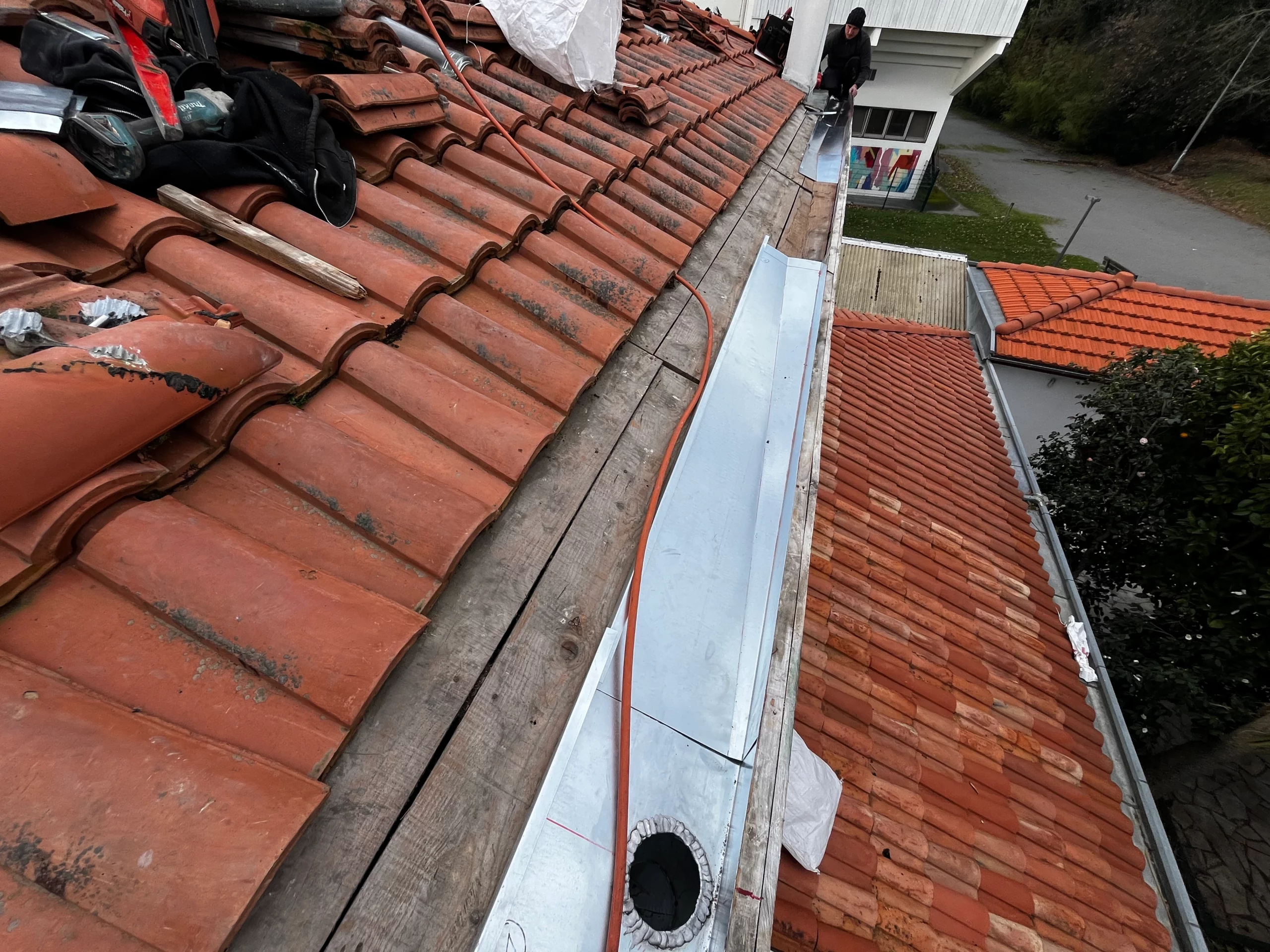 Ce chantier réalisé à Biarritz illustre l’importance d’un système d’évacuation des eaux pluviales fiable et bien conçu. Le remplacement complet des chéneaux sur la périphérie de la toiture a permis de sécuriser l’ensemble de la couverture et de prévenir les désordres liés à l’humidité.