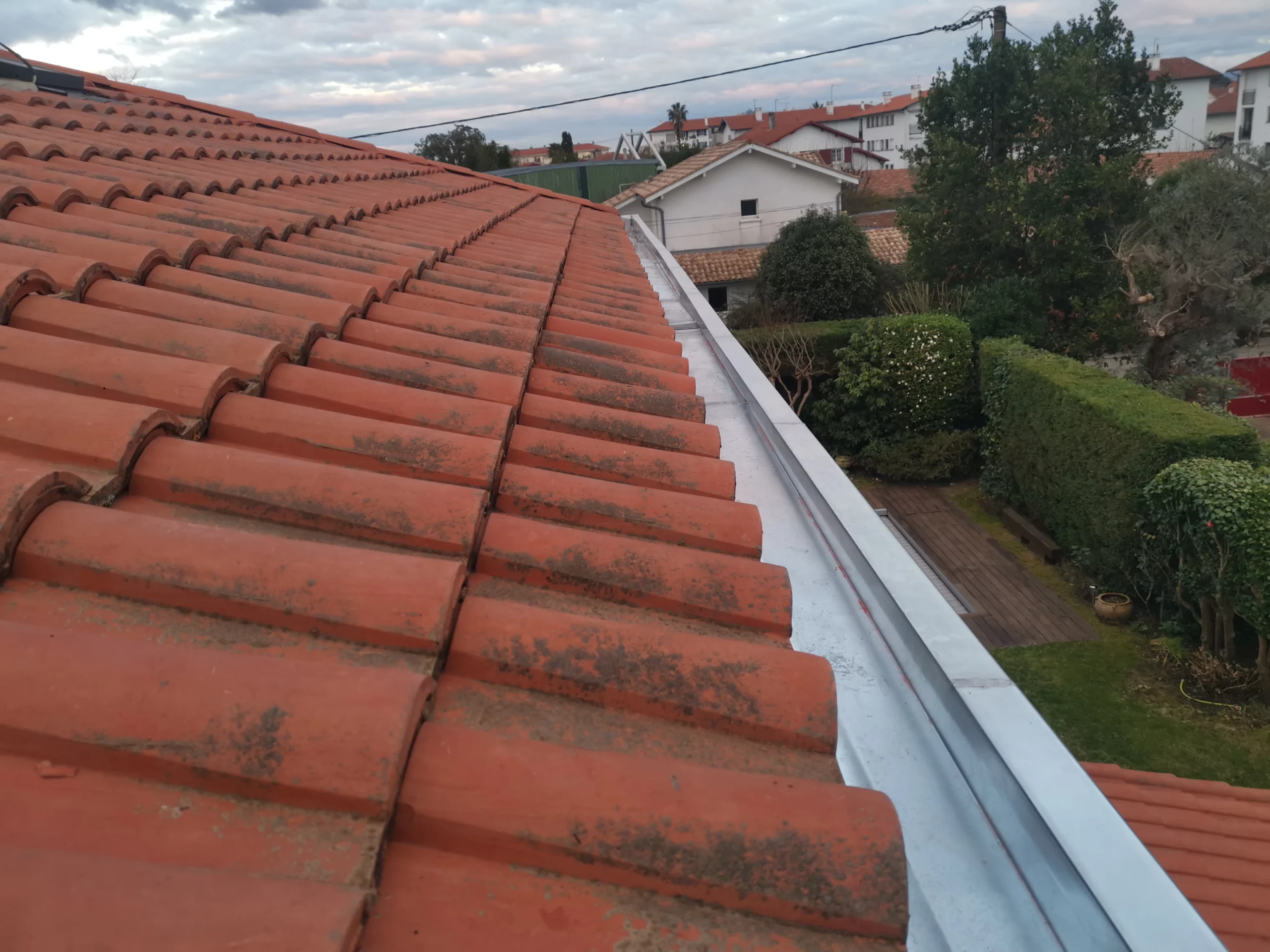 Un chéneau mal dimensionné ou mal posé peut entraîner des accumulations d’eau, ce qui fragilise rapidement l’ensemble du système. Ici, l’objectif était d’assurer une évacuation fluide, même en cas de fortes pluies, fréquentes sur la côte basque.
